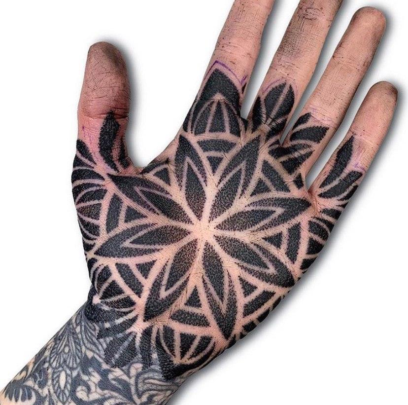 • Ксед ле Хэд. Английский татуировщик, который считается создателем техники дотворка. Он набивает только геометрические узоры, но каждый раз придумывает уникальную композицию и орнамент.
