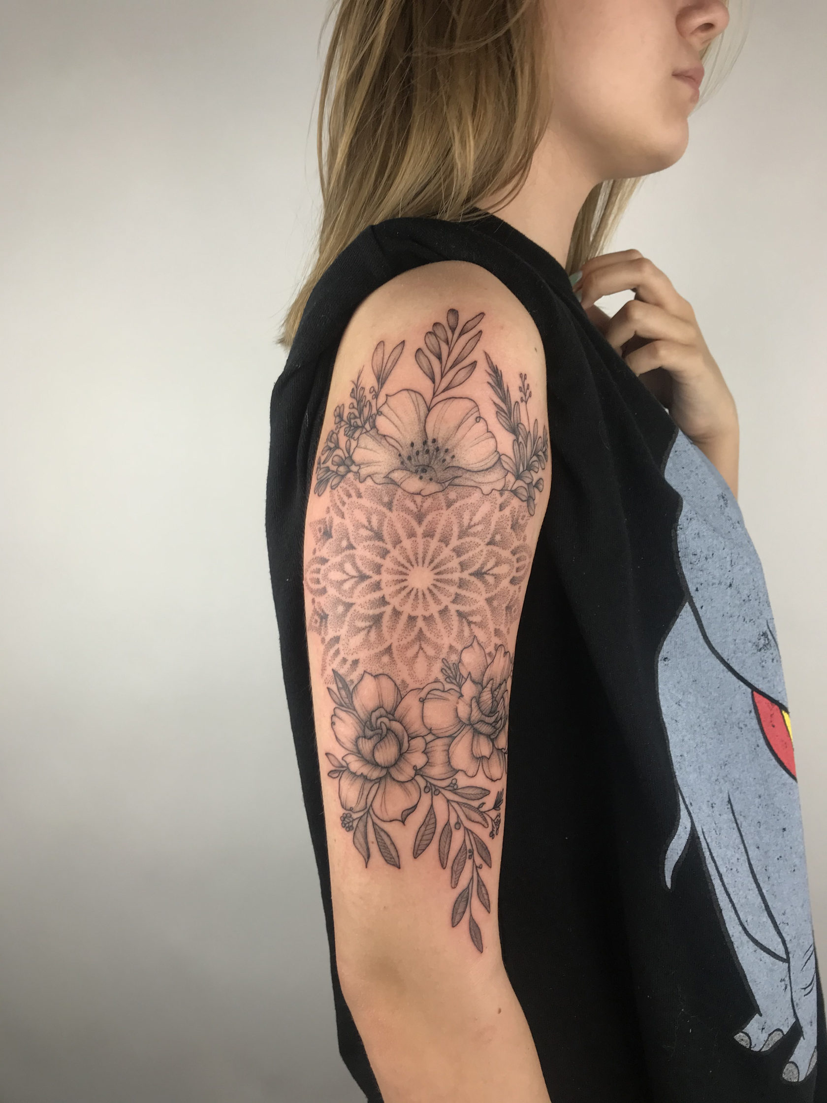 Иногда в одной татуировке сочетаются лайнворк и дотворк. Совмещение техник позволяет достигать «живости» изображения, значительно расширяет возможности дизайна.